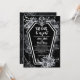 Celebrar o amor eterno com este convite de casamento gótico negro e escuro de Halloween. Projetado com uma forma de caixão impressionante, crânio e rosas de safra, teias de aranha, morcegos e sotaques florais moderados, esse convite para "Até a Morte Nos Parte" é perfeito para casamentos assustadores, cerimônias de outubro ou casais góticos com amor pelo macabro. Facilmente personalizado para ajustado dos detalhes do seu casamento no Zazzle.