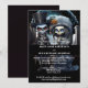 Apresentamos nosso convite econômico que define o tom perfeito para sua celebração assustadora! Imagine uma encantadora noiva e noivo cadáveres de mãos dadas em um cemitério iluminado pelo luar, cercados pelo brilho etéreo de uma grande lua cheia. Atrás deles, silhuetas fantasmagóricas de árvores retorcidas criam um cenário assustadoramente lindo.