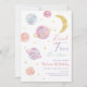 Convite Atingir Quatro Estrelas no Espaço Rosa Aniversário