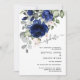 Precisa informar aos convidados de casamento que teve que mudar seu grande encontro, por favor, use este convite. Design moderno e elegante com marinho de aquarela, flores cor azul-rosa, cor , em branco. Itens correspondentes podem ser encontrados em minha Coleção Floral Azul Clássica.