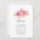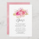 Rosas cor-de-rosa e folhagem tropical dourada adiaram o convite para o casamento.