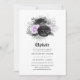 Gótica floral de aquarela adiou o convite de atualização de casamento em sotaque de prata brilhante roxa lavanda, preta e escura projetada para ser rápida e facilmente personalizada de acordo com as suas especificações de evento.