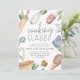 Planeje uma noite divertida em uma aula de culinária ou confeitaria com esses convites encantadores, apresentando uma borda de utensílios de cozinha em aquarela e folhagens botânicas verdes em cores suaves. Personalize com os detalhes da sua reunião em letras modernas.