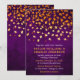 Este convite de casamento rústico e modesto mostra folhas de ouro em um fundo púrpura angustiado. O texto combina fontes itálicas e serif para uma aparência moderna e na moda. Isso será perfeito para os casamentos outono do outono.