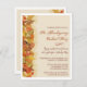 As folhas do outono, em várias tonalidades e transparências, constituem a margem esquerda deste convite. O texto personalizado se posiciona em um fundo colorido creme com uma borda branca moldando o convite inteiro. Use para o janto ou convites de festas de Ação de Graças, coquetel temático do outono ou festas de janto ou qualquer reunião onde você está procurando por uma sensação de calor e queda. Disponível com produtos correspondentes. com