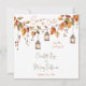 Vibrant Autumn Leaves and Lanterns Square Save The Date Wedding Announcement card. The Elegant Script font adds a feminine touch and the soft Orange background blends nicely with the Terracotta, Burnt Orange and Yellow colors beautifully. Add your specific information in the easy to use template.