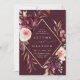 Este convite para o casamento apresenta uma coroa de dahlias, rosas de jardim e pedras em vermelho-burgundy, marrom, cor-de-rosa-pincelada sobre folhas de outono com uma falsa estrutura em forma de diamante de ouro. Para uma personalização mais avançada deste design, clique no BOTÃO FERRAMENTA DESIGN AZUL. Itens correspondentes também estão disponíveis.