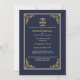 Comemore esta formatura especial com este convite encantador.  O fundo azul do marinho embelezado com um quadro de ouro e apresenta uma escala de justiça dourada.  O cartão é fácil de personalizar com seu texto, fonte, cor da fonte, opções de forma de papel e escolha de seis tipos de papel.
