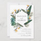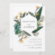 Convites elegantes e tropicais de casamento com seus nomes emoldurados por aves aquáticas de plantas paraíso com folhas verdes e ricas. Personalize o convite para o casamento do pássaro do paraíso adicionando detalhes do casamento, como a data do seu casamento, hora, local, etc. Os convites de casamento tropicais modernos são perfeitos para casamentos de destino!