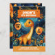 Embarque numa celebração emocionante com este vibrante design de dinossauro! Um dinossauro amigável em um cenário de selva exuberante com flores coloridas e vegetação cria um clima emocionante para uma festa de aniversário. Adicione o nome da criança e os detalhes do evento para criar um souvenir divertido. É uma maneira perfeita de convidar os convidados para um dia de aventura e alegria!
