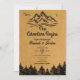 Esta carta de convite para o casamento, embarcando numa aventura rústica da montanha da floresta, é uma excelente escolha para um casamento temático da floresta. O design, inspirado pela natureza, mostra o contorno de uma floresta e montanhas de pinheiros contra um fundo de papel kraft simulado. É importante enfatizar que este cartão não está impresso em papel kraft genuíno; em vez disso, é um gráfico de alto nível criado a imitar a aparência do papel kraft.