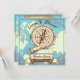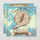 Aventura Espera! Convites Temáticos Náuticos de Território Baby Inesquecível com mapa mundial ao fundo, bússola, telescópio náutico e âncora. Pode ser usado para um Chá de Bebê do Menino ou Neutro.