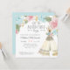 O lado azul do céu pálido pode ser alterado para corresponder à sua paleta de cores. Formato quadrado para um tema de convite de chá de fraldas exclusivo e destacável. Mão pintada em aquarela pela artista e designer Audrey Jeanne Roberts. Rosas azuis e cor-de-rosa com uma fenda e texto tipográfico "que a aventura comece." Copyright, Audrey Jeanne Roberts.