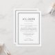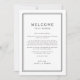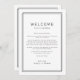 Um refinado modelo do itinerário do casamento preto e branco do Avery Suite, com uma fina fronteira dupla, e uma tipografia sans serif limpa. Ideal para casamentos modernos e minimalistas. A frente da nota de boas-vindas apresenta uma carta de boas-vindas ao casamento e a parte de trás apresenta a linha do itinerário do casamento. Estas notas são perfeitas para casamentos de destino e bolsas de boas-vindas de hóspedes.