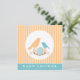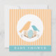 O convite para chá de fraldas Na moda apresenta uma ilustração linda e elegante de um casal de pássaros e três ovos em um ninho. Este convite vem em muitos esquemas de cores diferentes para ajustados, meninas e temas neutros de chás de fraldas de gênero.