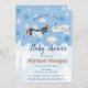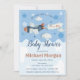 Avião bonito, estrelas, nuvens sobre fundo azul. Esses convites para chuveiros de bebês são facilmente personalizados para seu evento simplesmente adicionando seus detalhes de evento.