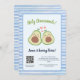 O Cute Avocado Gender Neutral QR Code Twins Invitation é uma maneira divertida e divertida de convidar seus entes queridos a celebrarem sua chegada. Apresentando um par de abacate fofo com fundo de faixa azul. Com muito espaço para incluir todos os detalhes importantes, além da opção de código de QR de varredura, este convite é perfeito para um chá de fraldas com tema espacial ou para qualquer pessoa que esteja procurando um convite exclusivo e memorável.