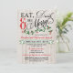 Se você está sonhando com uma casa aberta festiva de inverno ou Natal ou uma festa com toda a alegria que vem com a temporada, então este convite de festa divertido Coma, Beba & Alegre em grão de madeira pálido simulado pode ser exatamente o que você precisa. Este design tipográfico moderno apresenta várias fontes diferentes para a frase Coma, Beba & Alegre (NÃO personalizável), que também pode ser aplicada a qualquer festa de Natal ou celebração. A frase está em preto, vermelho e verde com um grande símbolo de e comercial decorativo em vermelho brilhante. Abaixo da frase decorativa no topo, há um ramo de folhas de azevinho verdes e bagas vermelhas abaixo. A frase abaixo do ramo é mostrada atualmente com a frase Casa Aberta de Natal, mas pode dizer o que você precisar. A faixa verde tipo fita com as palavras "CASA ABERTA DE NATAL" em preto pode dizer algo mais como "Festa de Natal Corporativa" ou "FaLaLaLaLa", etc. Você também pode remover a faixa verde se prefer