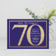 Convite do aniversário do 70 da surpresa. Os azuis marinhos e a festa de aniversário Dourado do brilho convidam com fundo dos azuis marinhos. Aniversário da surpresa. Aniversário adulto. Partido da festança de Bday dos homens ou das mulheres. Para uma personalização mais adicional, clique por favor "personalizam-no" botão e usam-nos nossa ferramenta de design para alterar este modelo.