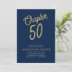 Comemore seu aniversário de 50 anos em estilo com este convite chic, azul e dourado. A escrita luxuosa e o histórico azul clássico irão definir o tom para um evento especial e memorável que sua família e amigos não irão esquecer em breve. Quer você esteja planejando uma reunião íntima ou uma festa maior, esses belos convites vão deixar seus hóspedes saberem que eles são convidados a se juntar a você para celebrar seu aniversário de marco.