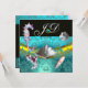Elegante, sofisticado e design único com uma pedra preciosa azul aqua 3D brilhante Você pode mover a pedra preciosa para personalizar com suas iniciais e colocar seu próprio texto como cartão de anúncio / cartões de lugar / cartões de save-the-date / cartões de agradecimento /, chuveiros de noiva, aniversários, festas, chuveiros de noivado, ou qualquer outro evento que você desejar!