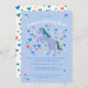 Quando eles querem uma festa de aniversário temática de unicórnio, você dá a eles uma celebração de tema de unicórnio. Este convite de aniversário azul, giro, branco, de rabo roxo apresenta um unicórnio azul-piscadinho, textural e ilustrado, com um brilhante mané arco-íris e cabelo traseiro cercado por uma dispersão de corações e faíscas mágicas. O texto do convite desta criança é fácil de personalizar, incluindo o texto do script arquivado para o nome e a idade. O backer correspondente tem um padrão de corações para combinar.