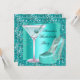 Festa de solteira brilhante Aqua Turquoise Teal Blue Calçados Altos Saltos Altos Vidro Martini Convite Todas as Ocasiões Festa de solteira do Partido antes da festa de casamento. Convite Todas as Ocasiões de Festas à noite, solteira, festa, festa de solteira, festas de solteira, meninas, noite, saída, garotas noite fora, todas, ocasiões, elegante, zazzle, adultos, zizzago, personalizável, modelo, Personalizar com seus próprios detalhes e idade. Modelo para Sweet 16, 16, Quinceanera 15, 18, 20, 21rua, 30, 40, 50, 60, 70, 80, 90, 100, Fabuloso produto para Mulheres, Meninas, Zizzago criou esta design, NOTE todas as imagens planas! Eles não têm brilho real, joias de diamantes ou Arcos reais!