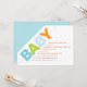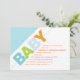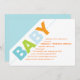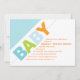 Gráfico e contemporâneo, este design apresenta "BABY" escrito em padrões divertidos de listras e bolinhas em um esquema de cores azul, verde e laranja. Perfeito quando o bebê é um menino. Cada linha se adapta aos detalhes de suas celebrações e faz uma declaração limpa e moderna.