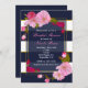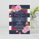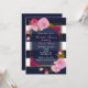 Convite Azul, branco e Dourado Partido Chic Floral Moderno