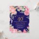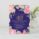 Convite para aniversário de 40 anos de Surpresa Floral para Mulheres. Flor Botânica De Aquarela. Dourada Glitter. Flores Florais De Peões Rosa. Aniversário Adulto. Fundo Azul Marinho.