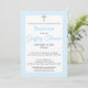 Celebre o dia especial do seu filho com este simples convite de batismo em aquarela, apresentando uma cruz cinza e fundo azul-claro para um design sereno e gracioso com um padrão de cruz cinza repetido no verso.