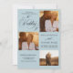 Chic e elegante azul-claro e branco tudo em um convite para casamento para caligrafia, adicione 3 de suas fotos favoritas com rsvp, acomodações, detalhes e mais informações. Com um belo roteiro de caligrafia.