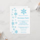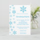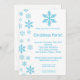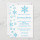 convite azul da festa de Natal dos flocos de neve
