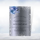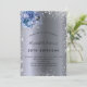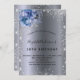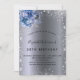 Para um elegante aniversário de 18 anos (ou qualquer idade). Um fundo metálico na moda escuro e falso prateado. Decorado com poeira cintilante e flores azuis. Personalize e adicione um nome, idade e detalhes da festa. O nome é escrito com um script de estilo manuscrito
