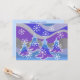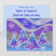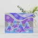 Uma paisagem de inverno moderna e estilizada com pinheiros foscos e flocos de neve espumantes. Convite com um design roxo, azul, prata, cinza e branco personalizável para você personalizar com seu próprio texto, imagens e ideias. O texto pode ser facilmente alterado usando o modelo fornecido ou clique no botão 'Personalizar o texto' para fazer outras alterações. Um lápis colorido digitalmente melhorado por Jess Perry.