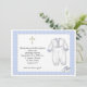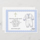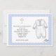 Convite para Natal ou Batismo com roupa de Batismo branca e azul com borda escaldada azul e ênfase cruzada branca. Os convites são fáceis de personalizar e são completos com envelopes e sua escolha de papel. Gráficos ©http://delightful-doodles.com
