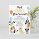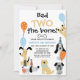 Cartoon Blue Bad Two The Bone Dogs segundo aniversário Invitation Cute dog Chocou com convite para segundo aniversário em um estilo leve, com vários cães, balões, chapéus de festa e ilustração óssea. Este dois maus do convite de aniversário de ossos também apresenta algumas impressões de pata preta nas costas.