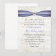 Creme elegante convite wedding colorido. Gráficos bonitos de um cetim que olha a fita azul da pervinca, na parte superior, do convite, contra um fundo de creme pálido do damasco. Um diamante dado forma coração sparkling decora o meio da fita para um revestimento elegante rico. Todo o texto está no roteiro preto ou azul e está pronto para personalizar para seu dia especial. Produtos de harmonização do casamento disponíveis.