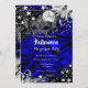 Halloween A seda azul profunda e o Convite de aniversário Mascarada de prata. Máscara de diamante preto e prata bonito e joias de penas. Por favor, note: todas as imagens planas! Use para qualquer idade.