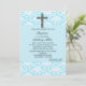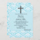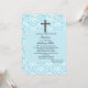 Comece sua celebração fora com este convite elegante contudo delicado para aquela batismo especial do Baptism/dos meninos. Tem um damasco azul na parte superior e na parte inferior do convite. Na parte superior no centro há uma cruz preto e branco do damasco. Verifique para fora os muitos outros artigos nesta linha tal como etiquetas, porte postal, agradeça a lhe notas, e a mais.