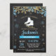 Convite azul do skate da festa de aniversário do patinagem no gelo. Aniversário do menino. Azul e floco de neve Dourado do brilho. Feriado do Natal do inverno. Fundo do quadro. Preto e branco. ø ò ó 4o 5o 6o 7o 8o 9o 10o 11o 12o 13o 14o 15a, alguma idade. Para uma personalização mais adicional, clique por favor "personalizam-no" botão e usam-nos nossa ferramenta de design para alterar este modelo.