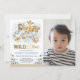 Convite Azul Dourado Boho Safari Wild One Foto Aniversário