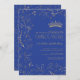 Convite Azul Dourado moderno Tiara QR Quinceañera