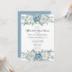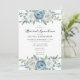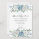 Convite de almoço de chá de panela com o tipo elegante e flores florais de cor d'água no topo e no fundo. As cores incluem azul empoeirado, branco e verde.