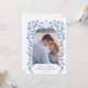 Elegante e único Pintado à mão aquarela Azul e branco Delft flores e folhas cercando uma moldura de arco com foto do casal cartão Save the Date