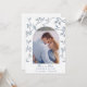 Delicado azul e branco Toile com pássaros e flores ao redor de uma moldura em arco com foto de casais Cartão de Salvar a Data