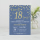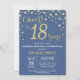 Surpreenda o 18º Convite de Aniversário com Fundo de Diamante Azul e Dourado. Dourada Confetti. Aniversário Adulto. Homens ou Mulheres Aniversário. Para mais personalização, clique no botão "Personalizar" e use nossa ferramenta de design para modificar este modelo.