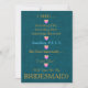 Convite Azul e Dourado com Coração Você Será Minha Dama de