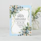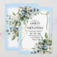 Convite Azul e Dourado Floral Elegante Aquarela Rústica