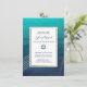 Este convite moderno e elegante do Bat Mitzvah ou do Bar Mitzvah apresenta linhas douradas (folha simulada) sobre um fundo de cor d'água e marinho ombre (que pode ser facilmente alterado para qualquer cor de sua escolha). Uma estrela de David aparece e combina com as linhas de ouro no fundo. Personalize este convite de tendência com o nome e as informações da parte.